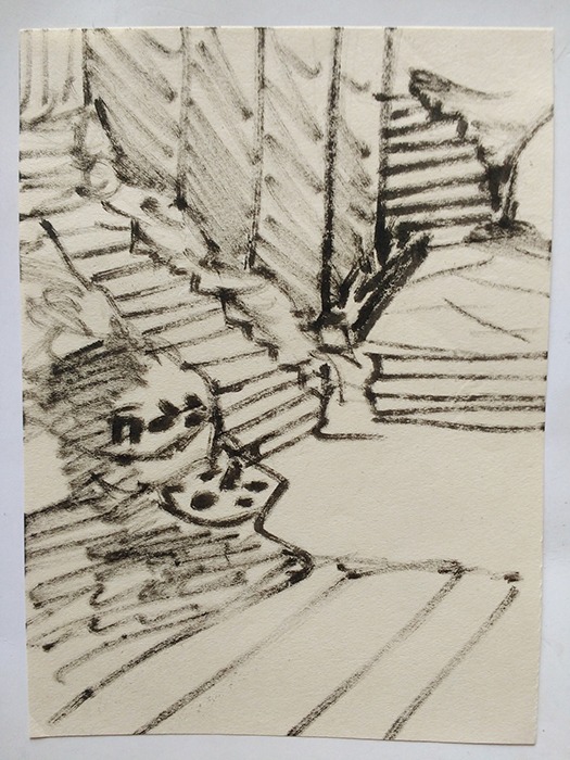There was a separation with these people, not only geographical but emotional, which is narrowed by sending a letter. These envelopes contain drawings of their houses, the scenarios of our memories. For these drawings, formal precision is secondary; they seek to encapsulate a scattered memory with flickering fidelity. The envelopes contain latent messages, things meant to be said but never overtly expressed: bas-relief markings that were never written in ink.